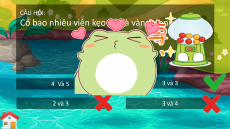 Có bao nhiêu viên kẹo đỏ và vàng trong hình? 4 Và 5 3 và 3 2 và 3 3 và 4