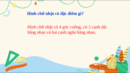 Hình chữ nhật có 4 góc vuông, có 2 cạnh dài
