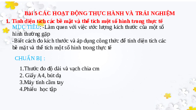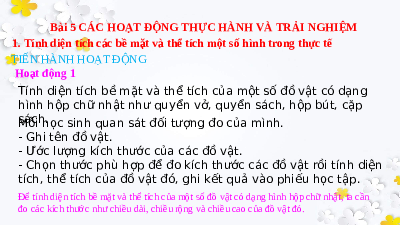 1. Tính diện tích các bề mặt và thể tích một số hình trong thực tế TIẾN HÀNH HOẠT ĐỘNG