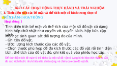 tích, thể tích của đồ vật đó, ghi kết quả vào phiếu học tập.