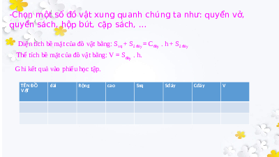 Để tính diện tích bề mặt và thể tích của một số đồ vật có dạng hình hộp chữ nhật, ta cần