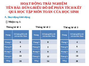 A. Hoạt động khởi động Nhiệm vụ 1: Thống kê tổ 1 Thống kê tổ 2 Thống kê tổ 3