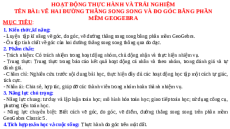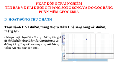 TÊN BÀI: VẼ HAI ĐƯỜNG THẲNG SONG SONG VÀ ĐO GÓC BẰNG PHẦN MỀM GEOGEBRA