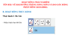 - Luyện tập kĩ năng vẽ góc, đo góc, vẽ đường thẳng song song bằng phần mềm GeoGebra.