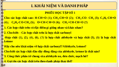 -Hợp chất carbonyl: hợp chất hữu cơ chứa nhóm carbonyl