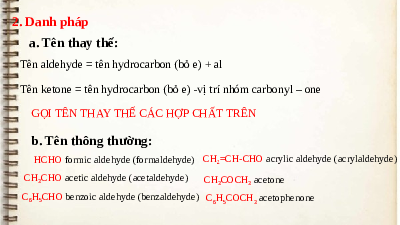 2. Cho biết: - Các hợp chất trên là hợp chất carbonyl