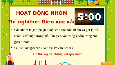 Các nhóm thực hiện gieo một con xúc xắc 10 lần và ghi lại số