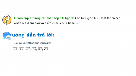 Luyện tập 1 trang 80 Toán lớp 10 Tập 1: Cho tam giác ABC. Viết tất cả các