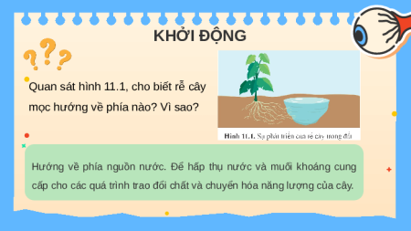 Hướng về phía nguồn nước. Để hấp thụ nước và muối khoáng cung