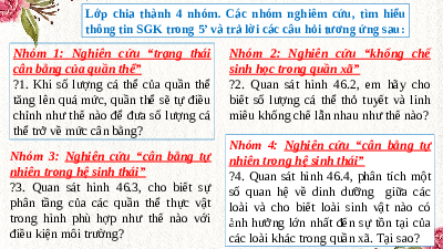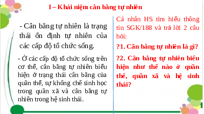 - Cân bằng tự nhiên là trạng tin SGK/188 và trả lời 2 câu