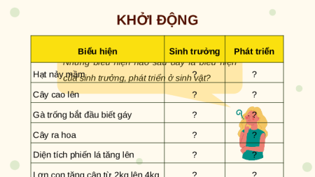Học, học nữa, học mãi!! KHỞI ĐỘNG Biểu hiện Sinh trưởng Phát triển