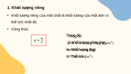 Kh i l ng riêng c a m t ch t là kh i l ng c a m t đ n v ố ượ ủ ộ ấ ố ượ ủ ộ ơ ị