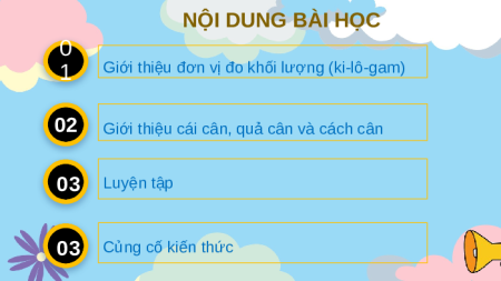 Giới thiệu cái cân, quả cân và cách cân 03 Luyện tập