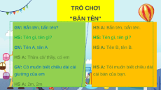 HS A: Bắn tên, bắn tên. HS: Tên gì, tên gì? HS: Tên gì, tên gì? GV: Tên A, tên A HS A: Tên B, tên B.