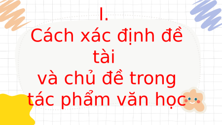 đề tài, chủ đề, ngôi kể, ngôn ngữ, thông điệp BÀI 6: TRUYỆN Kiến thức Ngữ văn I. Cách xác định đề tài và chủ đề trong tác phẩm văn học