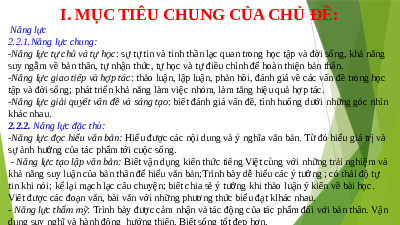 I. MỤC TIÊU CHUNG CỦA CHỦ ĐỀ: Năng lực 2.2.1.Năng lực chung: