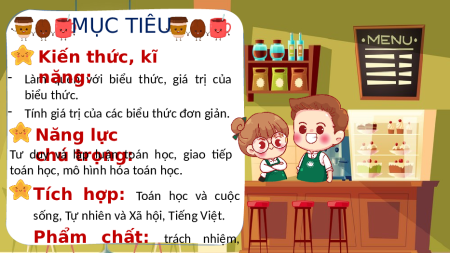 Thứ … ngày … tháng … nă TO m … ÁN TO LÀ LÀM M Q Q UE UEN VỚI N VỚI BI BIỂU ỂU THỨC THỨC Nguyễn Thị Ái Quyên MỤC TIÊU Kiến thức, kĩ - Làm n qu ă en n gvới