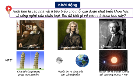 Hình bên là các nhà v t ậ lí tiêu bi u ể cho m i ỗ giai đo n ạ phát tri n ể khoa h c ọ và công ngh ệ c a ủ nhân lo i ạ . Em đã bi t ế gì v ề các nhà khoa h c ọ này? Galilei (1564-1642)