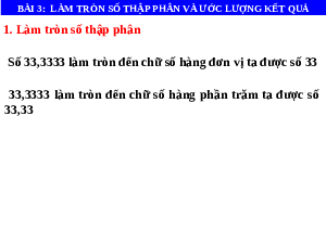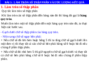 BÀI 3: LÀM TRÒN SỐ THẬP PHÂN VÀ ƯỚC LƯỢNG KẾT QUẢ