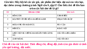 trùm các bài thơ đó là gì? TT TÊN BÀI THƠ TÁC GiẢ 1 ĐỒNG CHÍ CHÍNH HỮU 2
