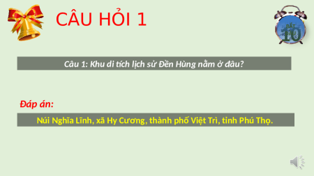Câu 1: Khu di tích lịch sử Đền Hùng nằm ở đâu? Đáp án: