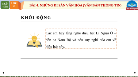 BÀI 4. NHỮNG DI SẢN VĂN HÓA (VĂN BẢN THÔNG TIN) VĂN 10 K H Ở I Đ Ộ N G