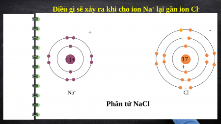 Điều gì sẽ xảy ra khi cho ion Na+ lại gần ion Cl- + - 11+ 17 + Na+ Cl- Phân tử NaCl