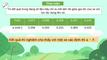 Kết quả thí nghiệm cho thấy với một xe xác định thì a F.