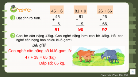 Giáo viên: Phạm Kim Chi 45 + 6 81 + 9 26 + 66