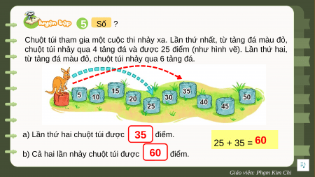 chuột túi nhảy qua 4 tảng đá và được 25 điểm (như hình vẽ). Lần thứ hai,