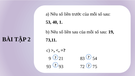 Mỗi cách diều gắn với vạch chỉ số nào trên tia số dưới đây? BÀI TẬP 1 10 45 70 97