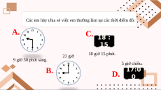 c. Cả nhà em ăn cơm lúc 18 giờ 15 phút. 15 0 d. Em đi ngủ lúc 21 giờ