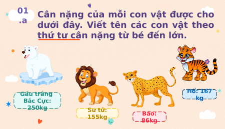 01. Cân nặng của mỗi con vật được cho a