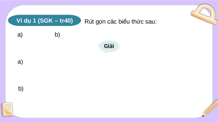 Rút gọn các biểu thức sau: a) b) Giải a) b)