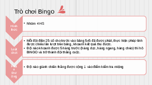 • Đội nào khoanh được 5 hàng trước (hàng dọc, hàng ngang, hàng chéo) thì hô chơi