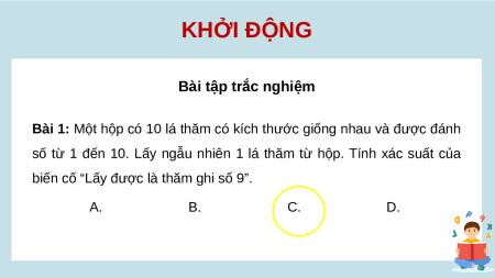 biến cố “Lấy được là thăm ghi số 9”. A. B. C. D. KHỞI ĐỘNG