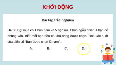 Bài 2: Đội múa có 1 bạn nam và 5 bạn nữ. Chọn ngẫu nhiên 1 bạn để