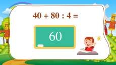 Trả lời sai không được thưởngquà. 40 + 80 : 4 = .?. 60