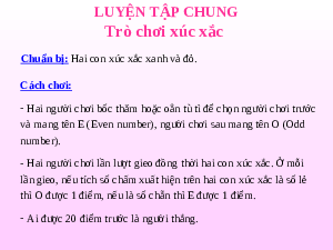 TIẾT LUYỆN TẬP CHUNG Trò chơi xúc xắc