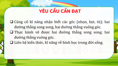❑ Củng cố kĩ năng nhận biết các góc (nhọn, bẹt, tù); hai