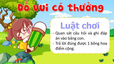 - Trả lời đúng được 1 bông hoa điểm cộng.