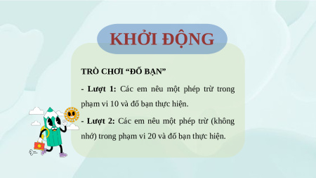 Giáo án Powerpoint Luyện tập phép trừ không nhớ trong phạm vi 20 Toán lớp 12 Cánh diều