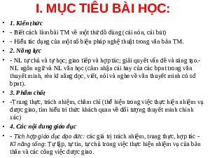 thuyết minh, rèn kĩ năng đọc, viết, nói và nghe về văn thuyết minh có sd bpnt). • 3. Phẩm chất