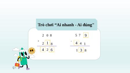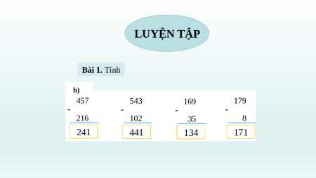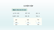 Trò chơi “Ai nhanh - Ai đúng" 2 0 8 5 7 ?9 + - 2 ? 1 8 ?4 4 1 ?4 2 ?6 1 ?3 8 BÀI 81 LUYỆN TẬP LUYỆN TẬP Bài 1. Tính a)b) 326 457 422 543 704 169 498 179 + - +- + - + - 253 216 312 102 25 35 18 ? 579 241 ? 734 441 ? 729 134 ? 499 171