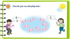 - Bộ bài giảng powerpoint Toán lớp 1 Học kì 1 Cánh diều bao gồm đầy đủ các bài giảng trong cả năm. Bộ bài giảng được thiết kế theo phong cách hiện đại, đẹp mắt, trình bày chi tiết cho từng phần học và bám sát chương trình Sách giáo khoa Toán lớp 1 Cánh diều.