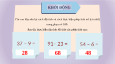 Các em hãy nêu lại cách đặt tính và cách thực hiện phép tính trừ (có nhớ) trong phạm vi 100.