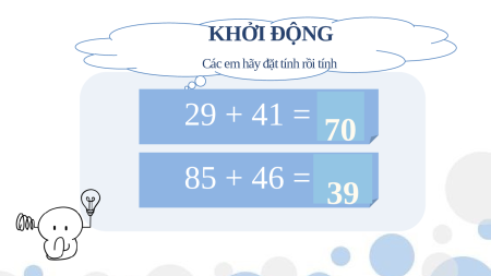 Các em hãy đặt tính rồi tính 29 + 41 = ?70 85 + 46 = ?39 Bài 37 LUYỆN TẬP CHUNG