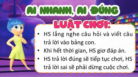 • HS lắng nghe câu hỏi và viết câu trả lời vào bảng con.