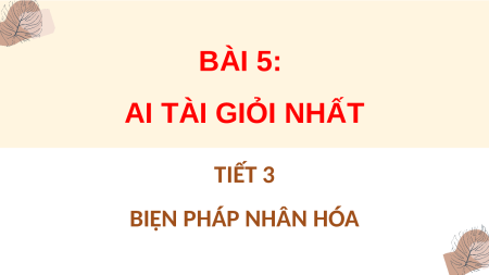 trò chuyện giữa các loài vật nhé! BÀI 5: AI TÀI GIỎI NHẤT TIẾT 3 BIỆN PHÁP NHÂN HÓA