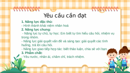 - Yêu nước, nhân ái, chăm chỉ, trách nhiệm.